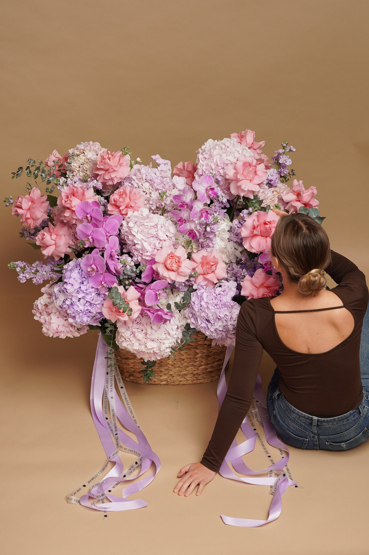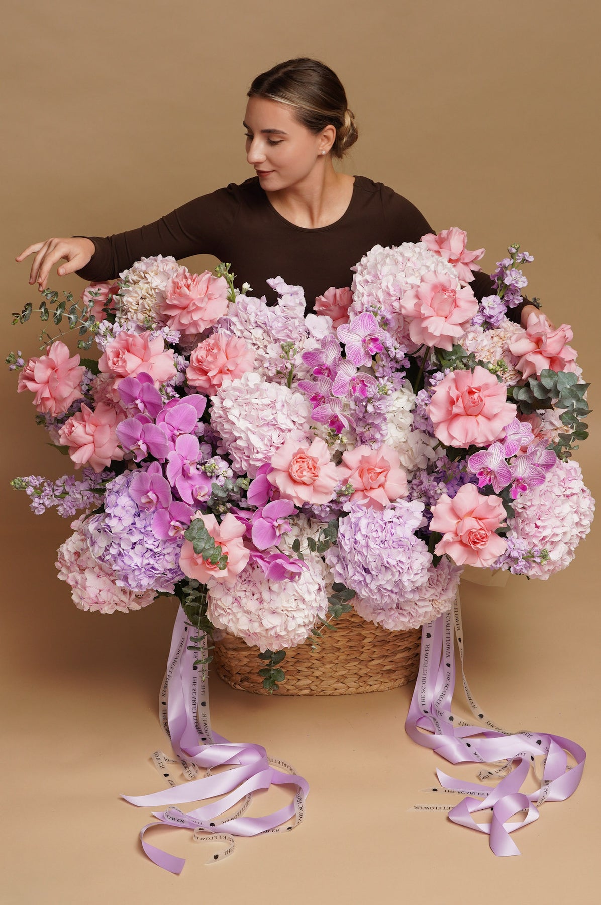 Basket - Blush Meadow - French roses, orchids, hydrangeas