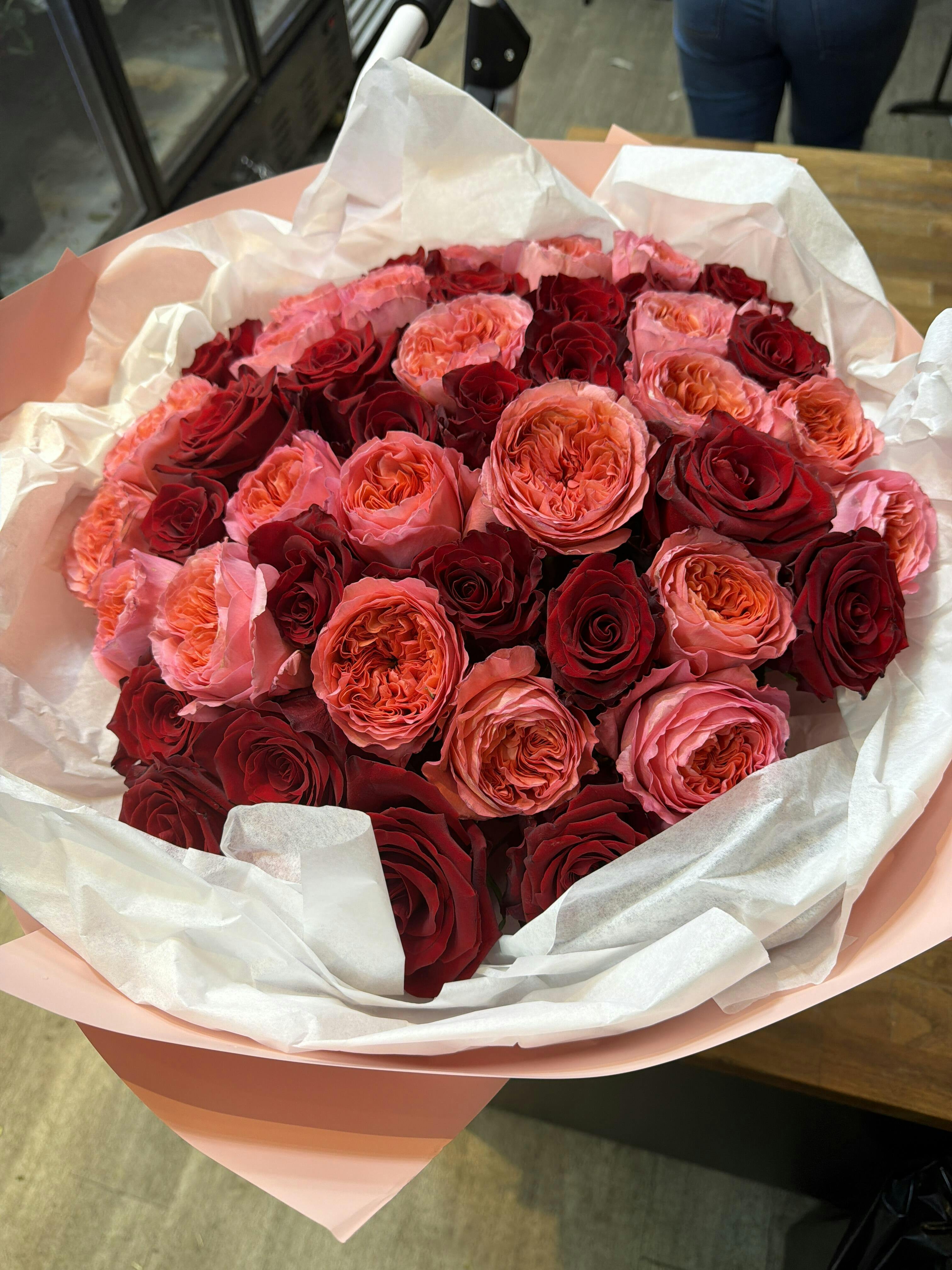 Bouquet - Scarlet Kiss - red and pink peony roses