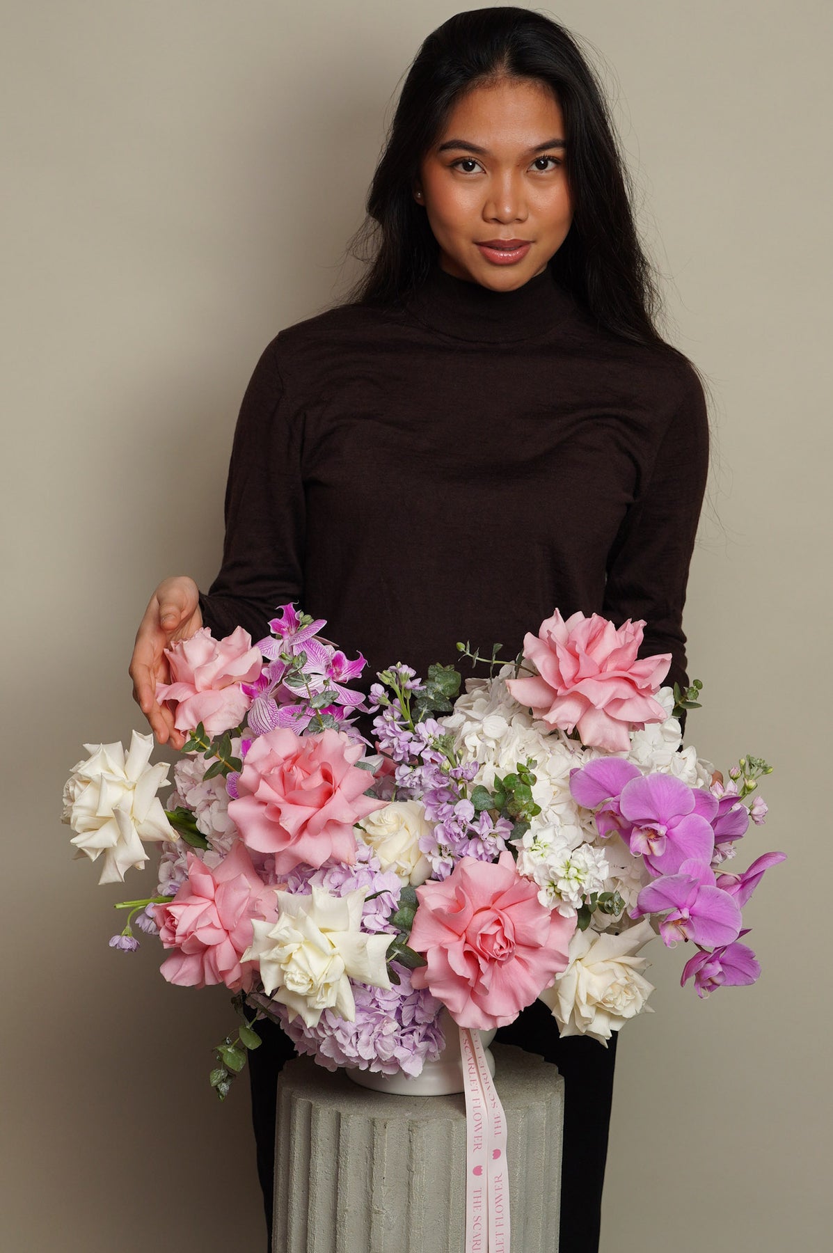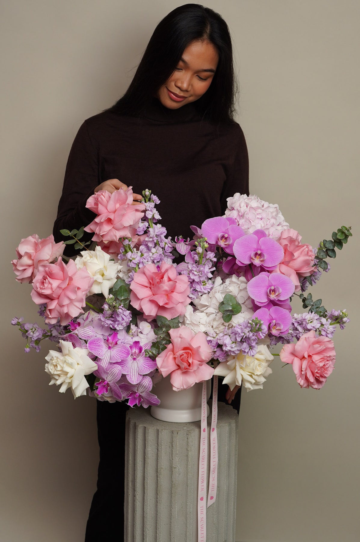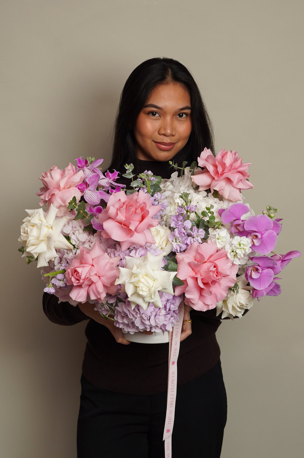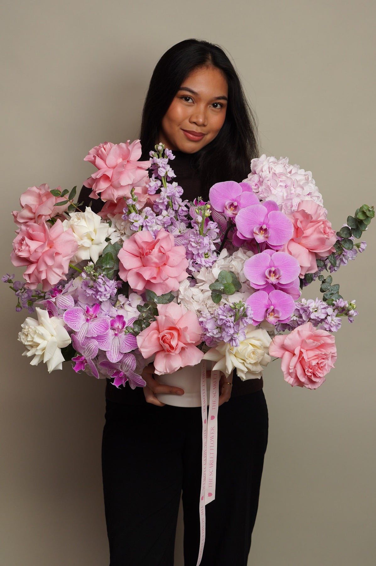 A perfect choice for anyone looking for luxury flower delivery, pink flower arrangements, orchid arrangements, romantic flowers, elegant floral designs, or premium flowers with a modern aesthetic.
