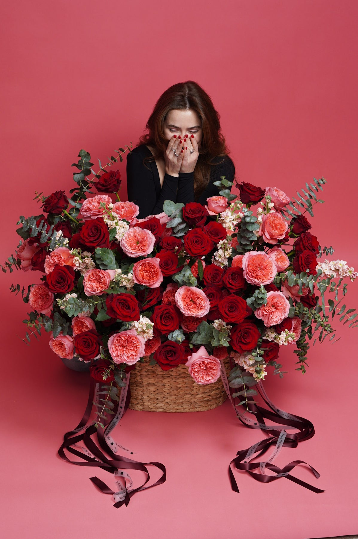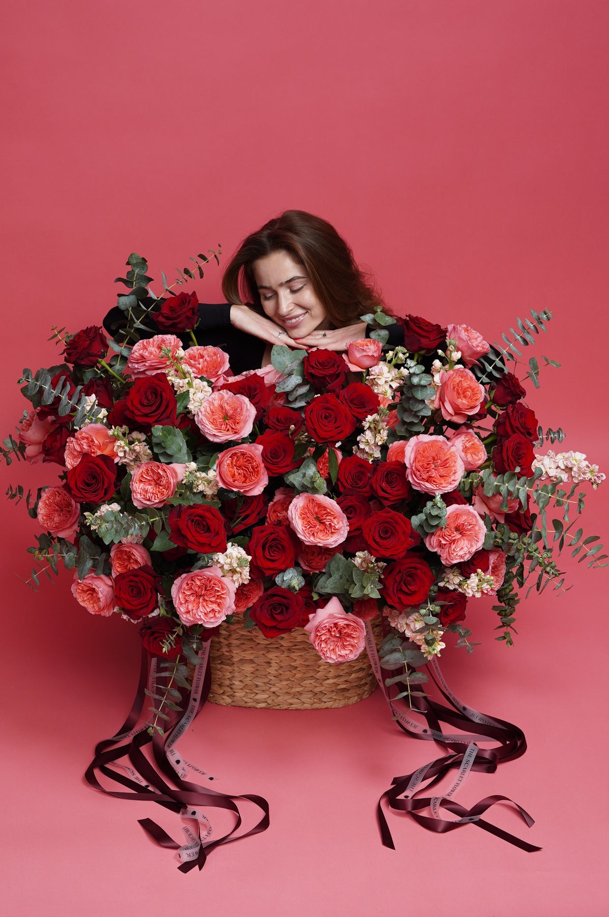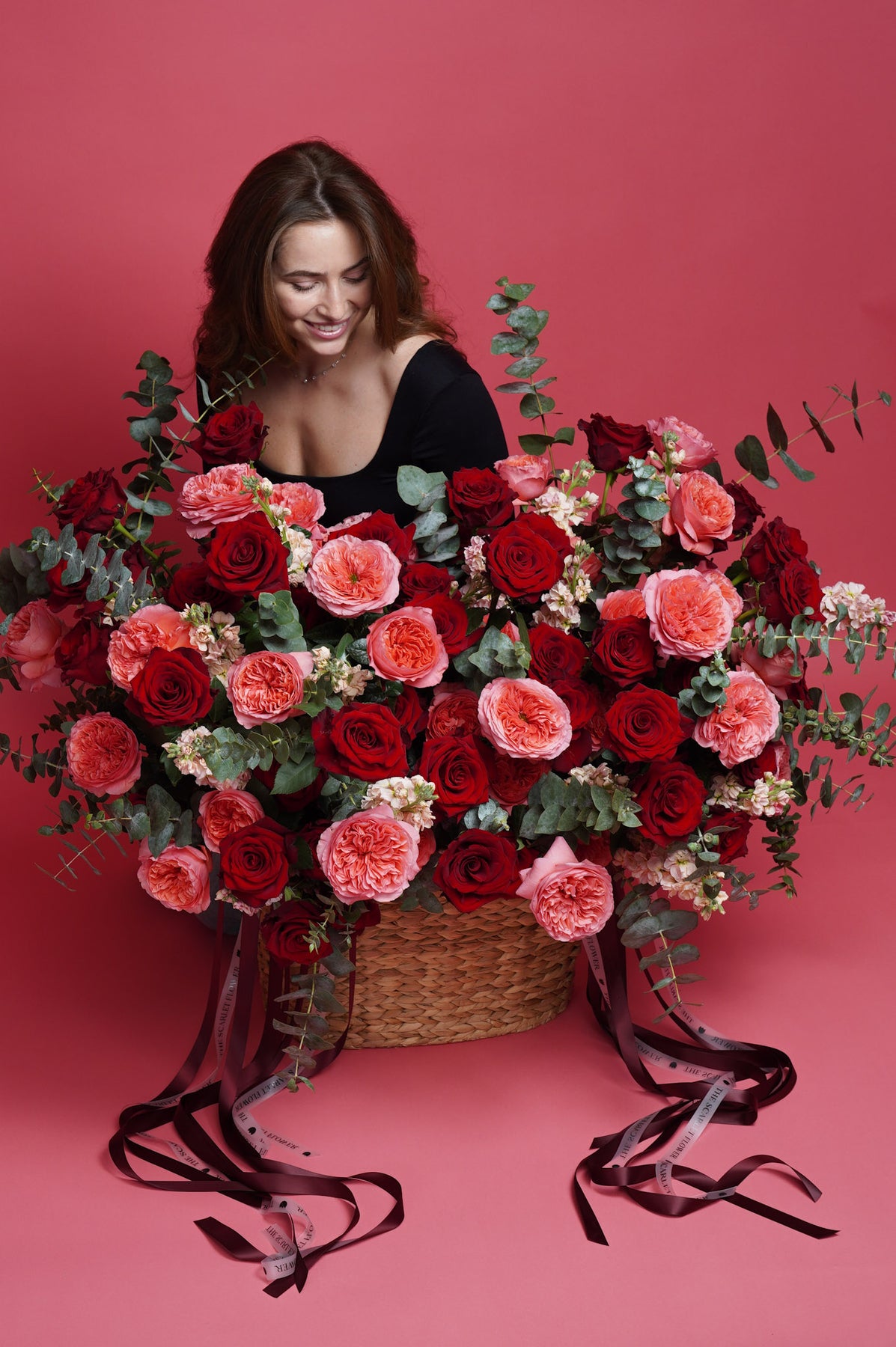 A rich mix of premium red roses and pink garden roses, paired with delicately fragrant stock and eucalyptus. Lush, romantic, and expressive, perfect for Valentine’s Day, anniversaries, or a heartfelt just because gift.